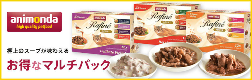 極上スープが味わえる「ラフィーネチャンク(総合栄養食) マルチパック」は、2袋(560円)相当お得