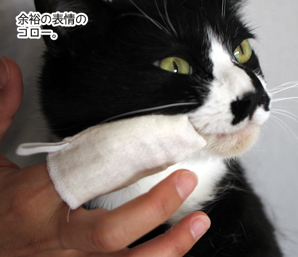 次のチャレンジした歯磨きアイテムはゴローもよく使っている「エコロロ オーガニックコットン デリケートフィンガー」。指にはめてダイレクトに奥歯に触れることができるので、歯磨きに慣れていない方にもおすすめ。⇒ エコロロの商品ページはこちら