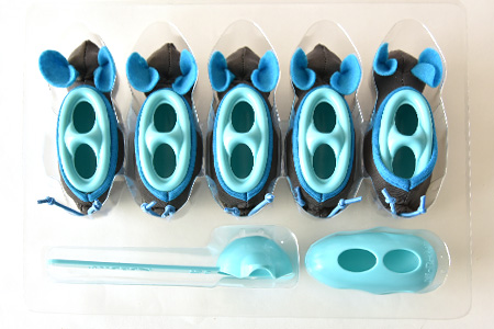 『ノー ボウル キャット フィーダー』には、ネズミの布に包まれている本番用が5つと、穴の多いトレーニング用カプセルが1つ付属しています。