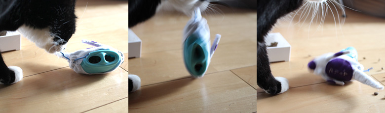 「うちの猫たち、上手にハンティングできるかな。」と、気がかりの方もいらっしゃるかと思いますが、スタッフ猫の多くは付属のネズミカバーで楽しそうにハンティングを楽しみました。