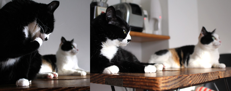 猫たちの好みを研究中のスタッフのオリジナルカバーはなかなか好評だったみたい。