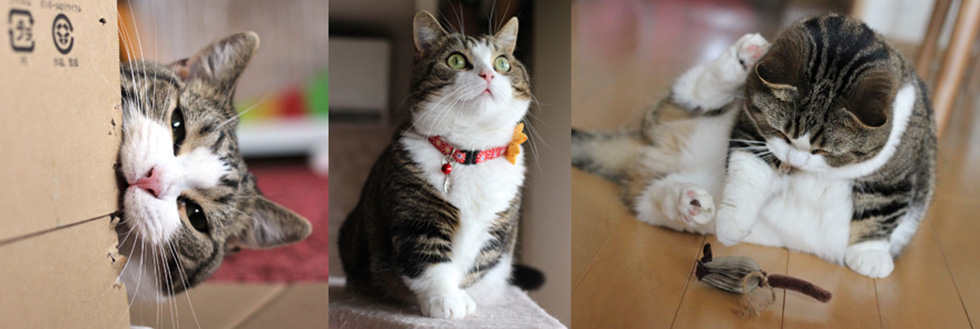会社同僚の知人が車で出張した先で、子猫のときに保護し縁あって我が家の子になりました。主食はカリカリ&カツオのナマリをまぜたのが大好きで、おやつはチーズか、カツオ節が大好きです。