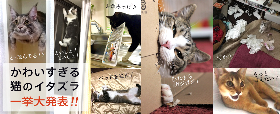 ハロウィンの「トリック or トリート!(おやつをくれないとイタズラしちゃうよ)」にちなみ、募集した『かわいい猫のかわいいイタズラ』。