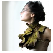 ウールの柔らかさと温かみ、素材本来が持つものと、彼女の女性的なデザインが見事にコラボレーションしている作品は、正にアートそのもの。