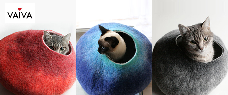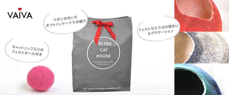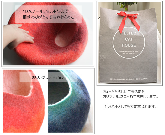 100%ウールのフェルトで出来ていますので、肌触りも柔らかで、猫たちのお気に入りになること間違いなしです。
