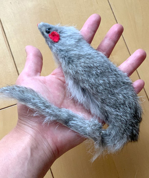 土台に毛皮を巻いただけの痩せっぽっちのネズミさん。硬いせいかうまく咥えられないようで、おもちゃを咥えて運ぶのが好きなうちの子には合いませんでした。リアルファーを使うほどリアルを求めるならもう少し太らせてあげたほうが本物っぽいんじゃないでしょうか?