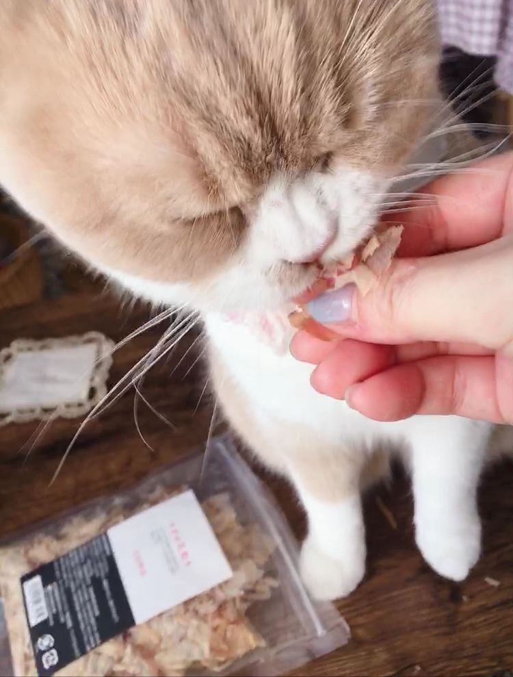 ブラッシングが嫌いな我が家の9ヶ月の猫に、ブラッシングのごほうびとしてあげています。ふわふわで、自分でも食べてみましたが、薄味で美味しかったてす。削り節は、カロリーをあまり気にしないであげられるのもいいですよね。