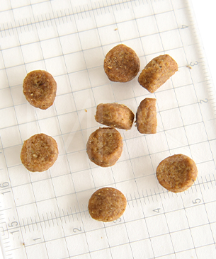 タンパク質 32%以上、脂質 17%以上、粗繊維 2.5%以下、灰分 8%以下、水分 9%以下