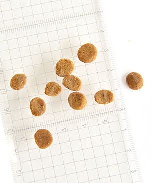 タンパク質 31%以上、脂質 17%以上、粗繊維 2%以下、灰分 7.2%以下、水分 9%以下