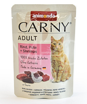 アニモンダ「カーニー」シリーズからパウチタイプ新登場。冷凍していない新鮮なお肉を使用し、肉本来の風味や味わいを楽しめます。穀類および大豆不使用でビタミンミネラルをバランスよく配合しています。人工的な添加物は使用していません。