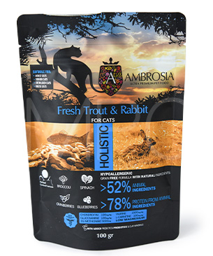 「アンブロシア CAT クラシック トラウト&ラビット」は、タンパク質の78%が動物性タンパク質。