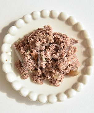 ラム(ハート、レッドミート、レバー、ラング)、スープ、ホース(レッドミート、ハート、レバー)、ズッキーニ、トマト、ミネラル類、ジンジャー、グレープシード油
