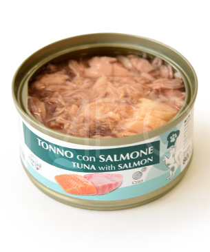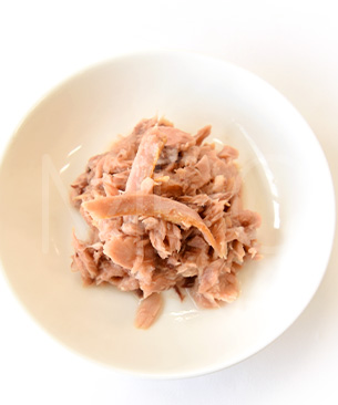粗くほぐしたツナとサーモンを使用。魚派の猫におすすめです。