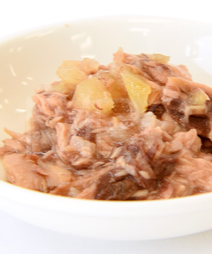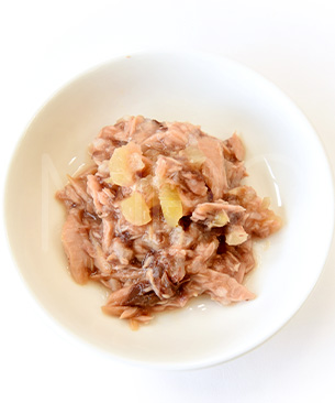 粗くほぐしたツナとパイナップルを使用。魚派の猫におすすめです。