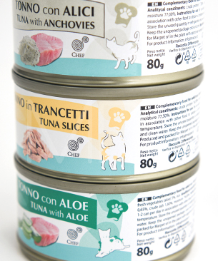 高品質な食材で、食いつきの良さを重視して作られた嗜好性抜群のシェフシリーズ。ツナやチキンをベースに、それぞれフルーツや野菜、魚介類などを加えたバリエーション豊富なウェットフードです。