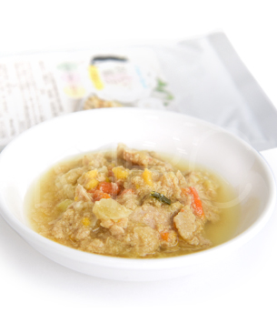 タンパク質 6%以上、脂質 1%以上、粗繊維 1%以下、灰分 1.5%以下、水分 89%以下