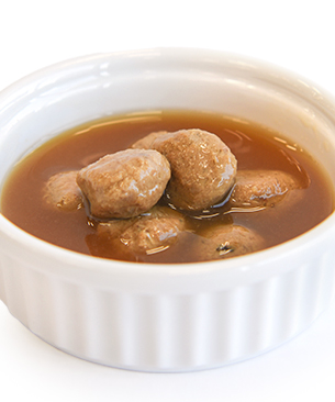 食べやすい小さめのイワシのミートボールに、うまみたっぷりのスープを合わせたウェットフード。