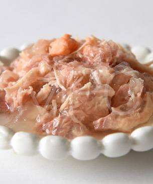 フレッシュチキンとツナ、サーモンを合わせたゼリータイプのウェットフード。素材のおいしさを堪能できるシンプルなレシピでありながら、猫にとって必須の栄養素であるタウリン、お腹の健康維持のためにフラクトオリゴ糖、毛玉ケアに役立つ食物繊維などを配合しています。
