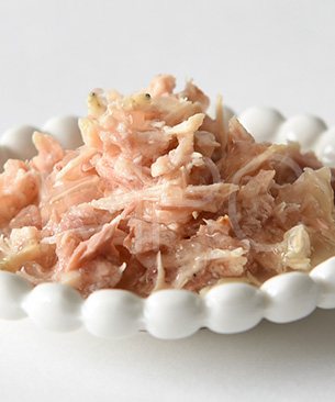 フレッシュチキンとツナを合わせ、シラスをプラスしたゼリータイプのウェットフード。素材のおいしさを堪能できるシンプルなレシピでありながら、猫にとって必須の栄養素であるタウリン、お腹の健康維持のためにフラクトオリゴ糖、毛玉ケアに役立つ食物繊維などを配合しています。