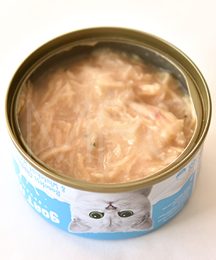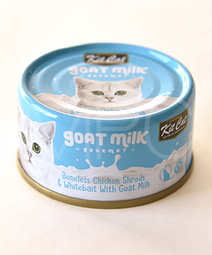 猫の好みに合わせて選べる12種類。猫が大好きなゴートミルク(ヤギミルク)入りで、ツナをベースにした6缶とチキンをベースにした6缶。
