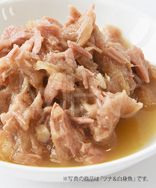 ツナ、サーモン、大豆油、カシアガム、グァーガム、リン酸二カルシウム、ビタミン類(ビタミンA、ビタミンD3、ビタミンE、チアミン、リボフラビン、パントテン酸、ナイアシン、ピリドキシン、葉酸、ビオチン、ビタミンB12、コリン)、ミネラル類(カルシウム、リン、カリウム、ナトリウム、塩素、マグネシウム、鉄、銅、マンガン、亜鉛、ヨウ素、セレン)、ツナ抽出物、塩化カリウム、タウリン、塩化コリン、フラクトオリゴ糖