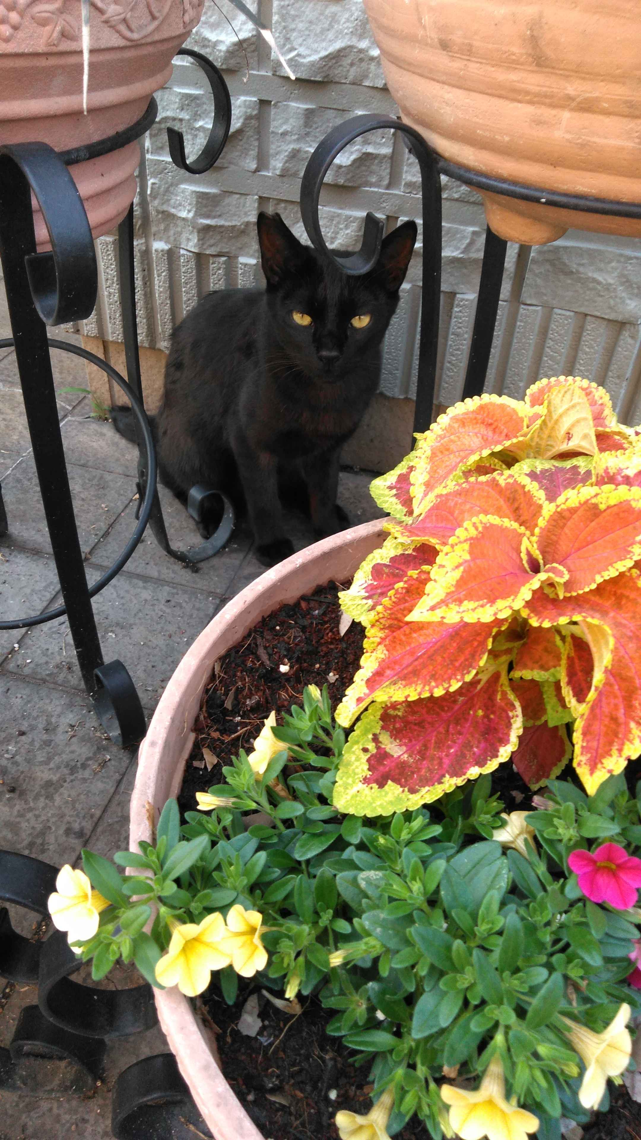 仔猫のクロはツナ味が大好きなので、ペロペロ音をたてて舐めていました。気に入ったのかお皿を舐めまわしていました。食後は満足して、ガーデニングの下でゆっくりしていました。