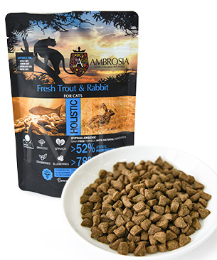 新鮮な魚・果物・野菜の栄養素を損なわないよう、低温のオーブンでじっくり調理されたオーブンベークド製法のドライフード。
