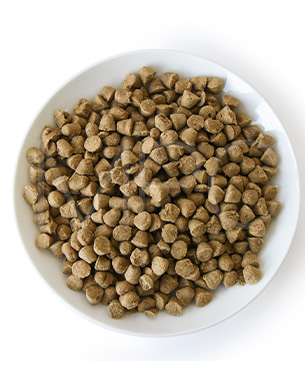 従来のフードに比べて柔らかく簡単に噛み砕けるので、内臓にかかる消化負担を軽減。