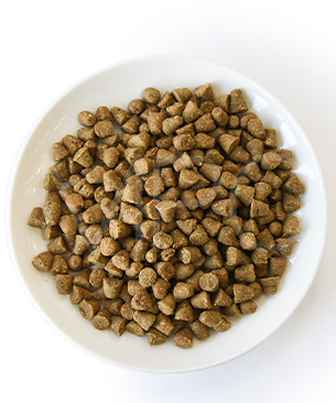 従来のフードに比べて柔らかく簡単に噛み砕けるので、内臓にかかる消化負担を軽減。
