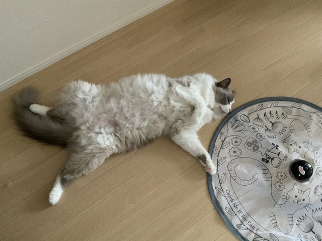 届くと早速何度もおねだりしに来て、その後はお馬さんのように元気に走り回っていました。