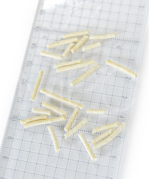 粒は直径約2mmと細長い形状で、濡れると素早く固まるので足につきにくい。