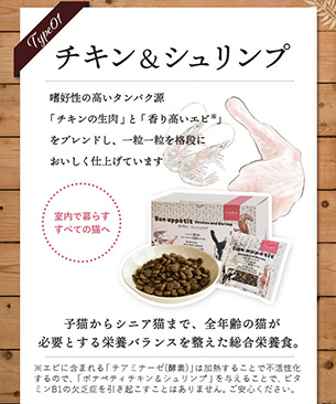 ラム&フィッシュもよく食べますが、チキン&シュリンプの食いつきは抜群でした。リピートしようと思います。よく食べるからか、うんちの量が増えた気がします。