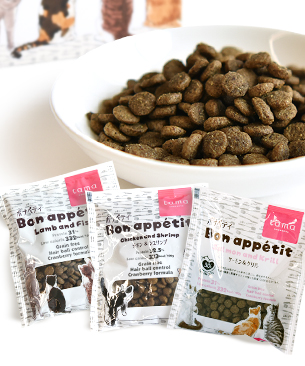 何か家のちび(MIXの三毛、14歳の女の子です)が喜ぶものはないかなと色々とネットで探していたところ、ボナペティお試しセットのページにたどり着きました。100円で試せるなら安いなと思い、軽い気持ちで購入。ボナペティが届いてから成分表示などを見て、その時にグレインフリーという言葉に(どういう意味だこれ?)となりネットで調べました。恥ずかしながら14年もちびと一緒に居たのに、私はグレインフリーという言葉を知りませんでした。調べた後は(いつものご飯より美味しく感じるのかな?でもちびは好き嫌いがハッキリしていて、大体新しいものは食べないからどうなるんだろう?)などと考えながら、器にボナペティのラム&フィッシュを少し入れてちびの前に差し出してみました。するとその瞬間、ガツガツとボナペティを食べ始めたのです。こんなにがっついて何かを食べるちびは久々に見ました。見ていてとても嬉しかったです。ちなみにちびは獣医師から療法食を食べるように言われているので、ボナペティは1日に10g程をおやつとして与えています。普段のご飯はロイヤルカナンの腎臓サポートスペシャルで、おやつとしてボナペティを少しあげる感じです。ちびはすっかりボナペティ(特にラム&フィッシュ)の虜になってしまったようで、私がボナペティを器に入れる音を聞くと隣まで来て立ち上がるようになってしまいました。笑猫の体の事をよく考えて開発されたボナペティ。体に良いものを美味しく摂れるなら、それに越した事はありません。初めてのグレインフリーがボナペティで本当に良かったです。これからもお世話になります。