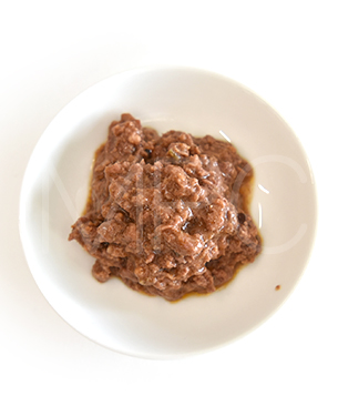 タンパク質 11.9%以上、脂質 6.4%以上、粗繊維 0.3%以下、灰分 1.5%以下、水分 79.2%以下