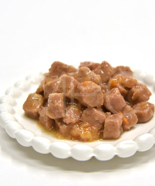 それぞれ違った魅惑のソースと、肉、魚、野菜で作られたノーグレインのウェットフード。
