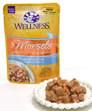 厳選素材を使用したウェルネス ディバインデュオシリーズは、2層の異なる食感と味わいが1つのカップで楽しめます。パテや角切りになった肉や魚と野菜で作られたノーグレインのウェットフード。