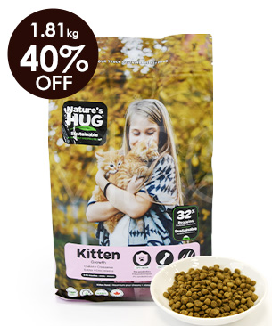 子猫の健康的な成長と発育をサポートするデハイドレイテッドフィッシュや白米などの消化性の良い食材を使用。