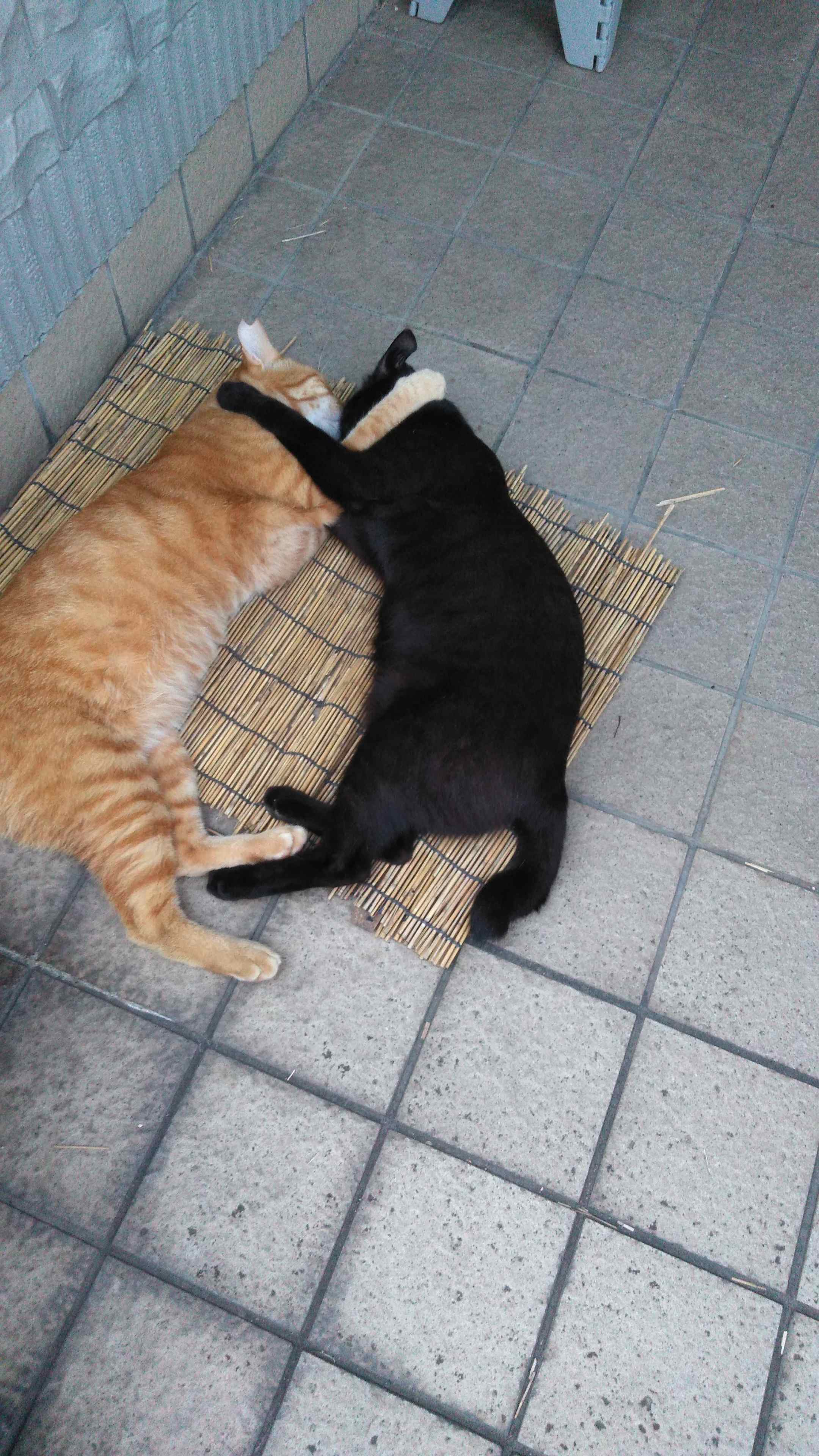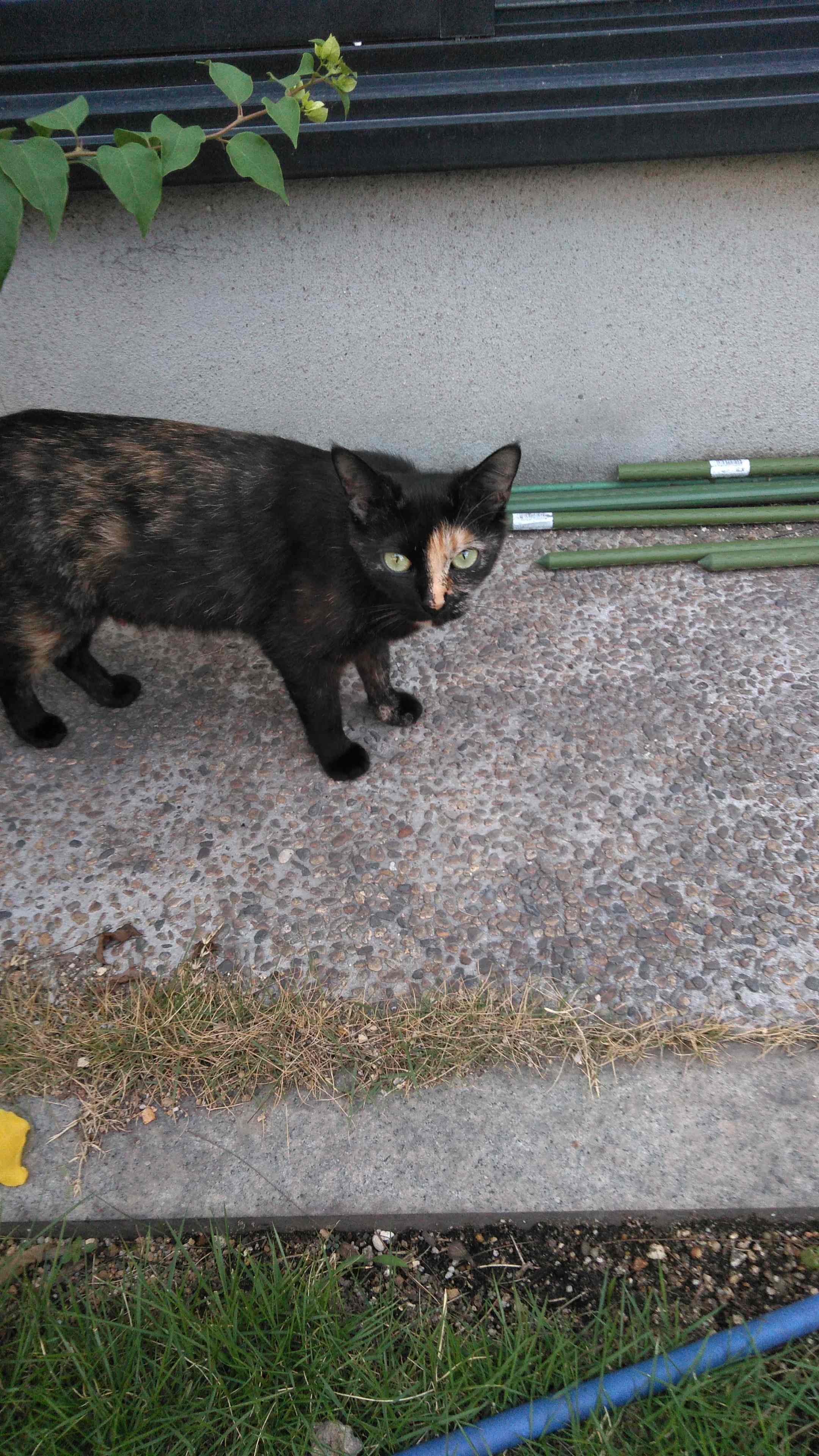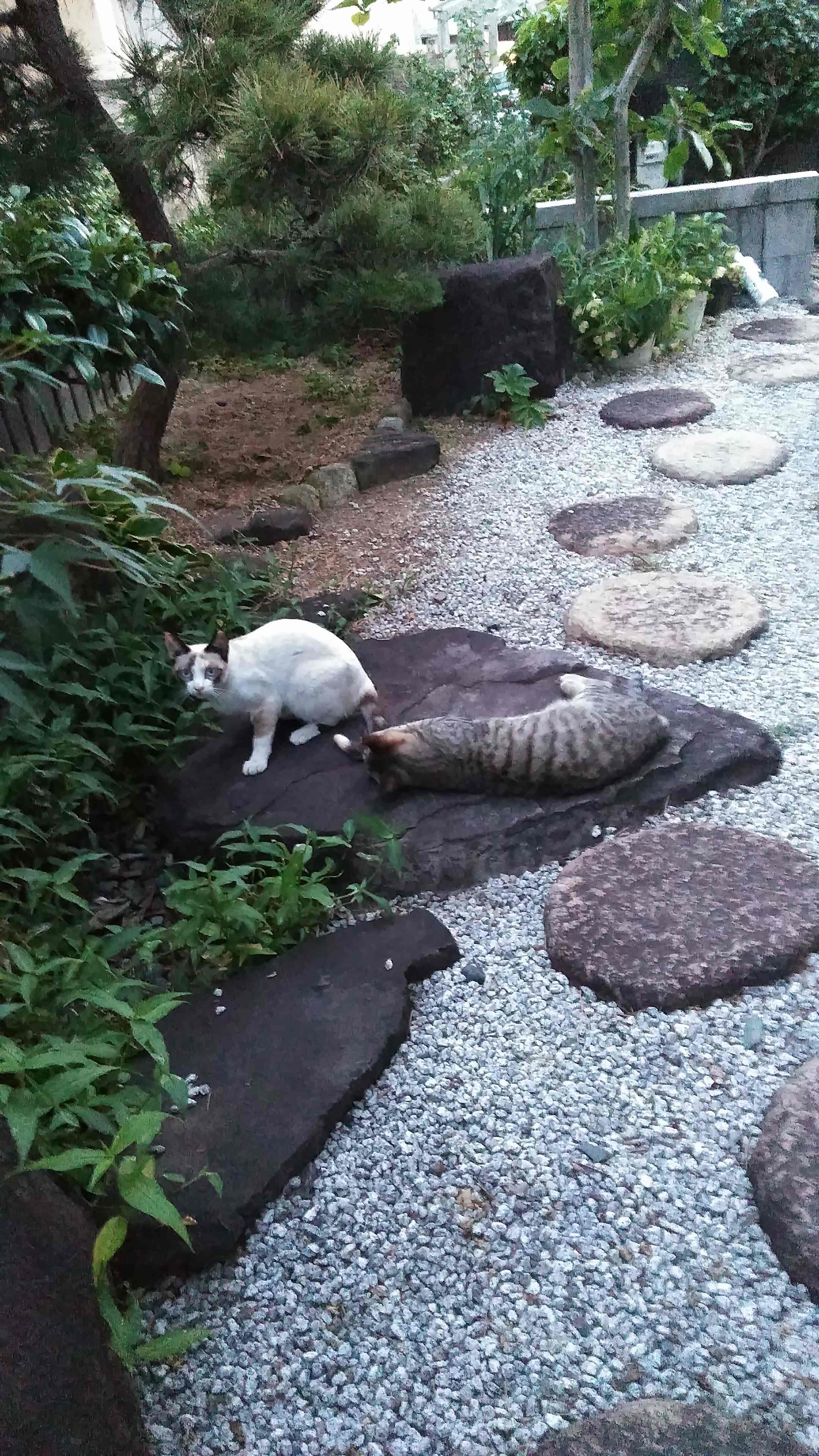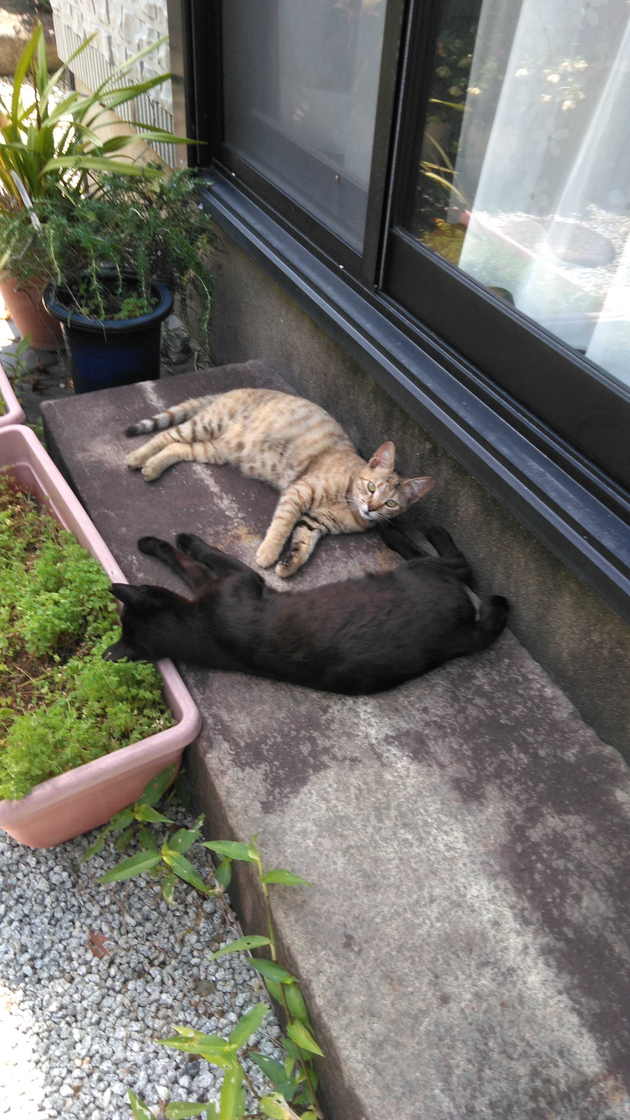 仔猫のクロはツナ味が大好きなので、ペロペロ音をたてて舐めていました。気に入ったのかお皿を舐めまわしていました。食後は満足して、ガーデニングの下でゆっくりしていました。