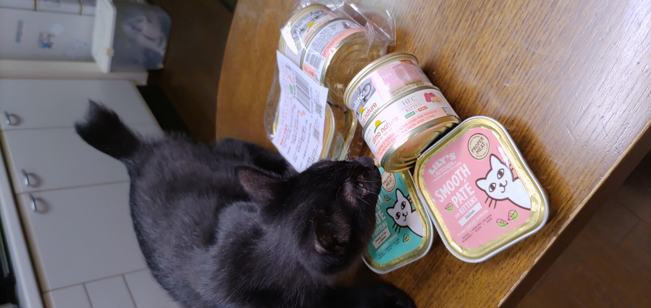 子猫を保護しました。生後3か月くらいの男の子です。タイミングよく嬉しいセット価格で販売されていたので購入。また、今日も追加で購入しました。いずれもパテタイプで食いつき良好です。一回で全部は食べられませんので2回に分けて少しドライフードも混ぜて与えています。