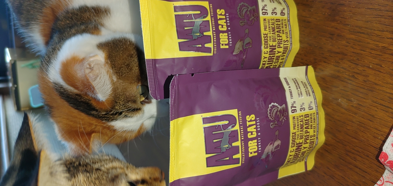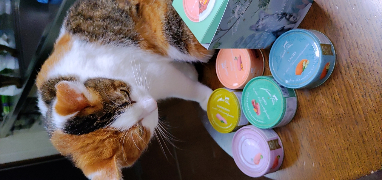 初めての購入です。お米が少し入っていますが主原料が子牛だけなので、お試しで買いました。見てるだけで、私もヨダレが垂れてきそうな色と匂いで我が家のニャンコも大喜びです。食いつき抜群!!少しお高めなのでご褒美用に良いかも。栄養捕食なので、ドライフードやその他、手作り食とのコラボで体に良さそうです。また、リピ予定です。