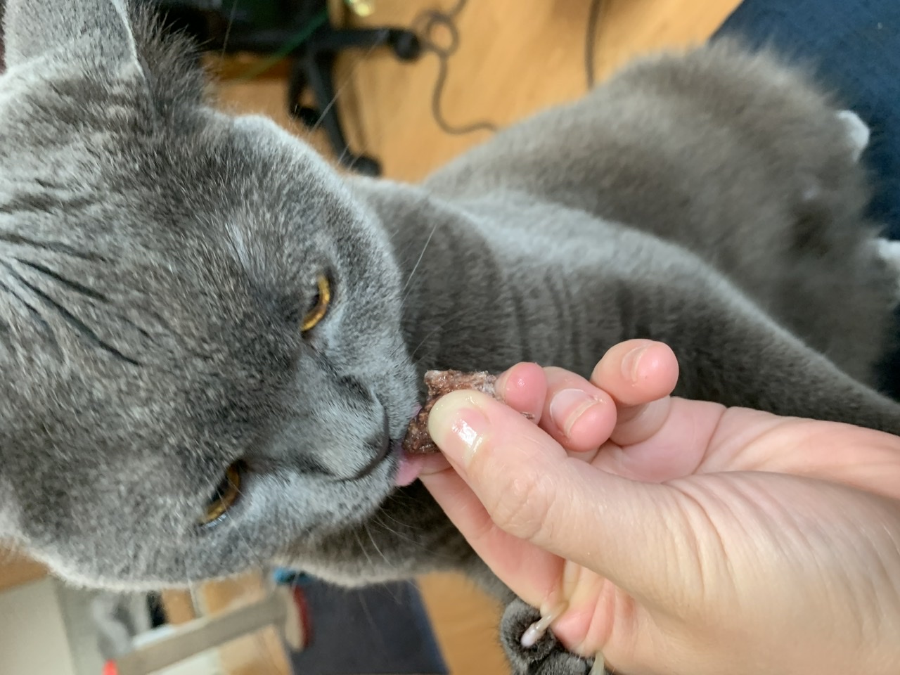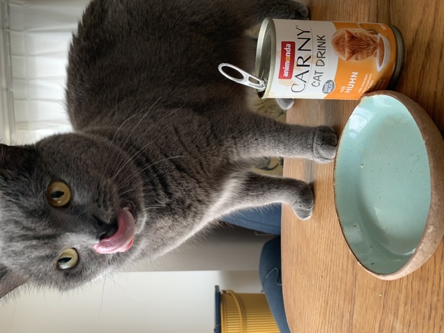 そこからは毎朝、出かける前に「くださいにゃ」とおねだりをするように。低カロリーで、マンナンが入っているのでお通じもバッチリ。ち●ゅーるの代わりにあげています!