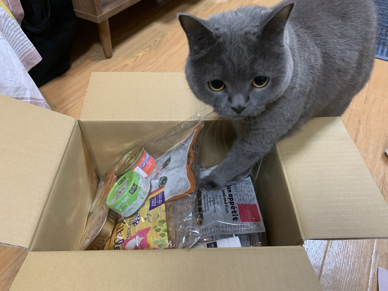 最初はアソートセットに入っていました。「味のクセが強そうだし、ダメ元で上げてみよう…」と思っていましたが、一口あげたら、目が爛々と輝き始めました!お皿やスプーンを最後まできれいに舐めます。