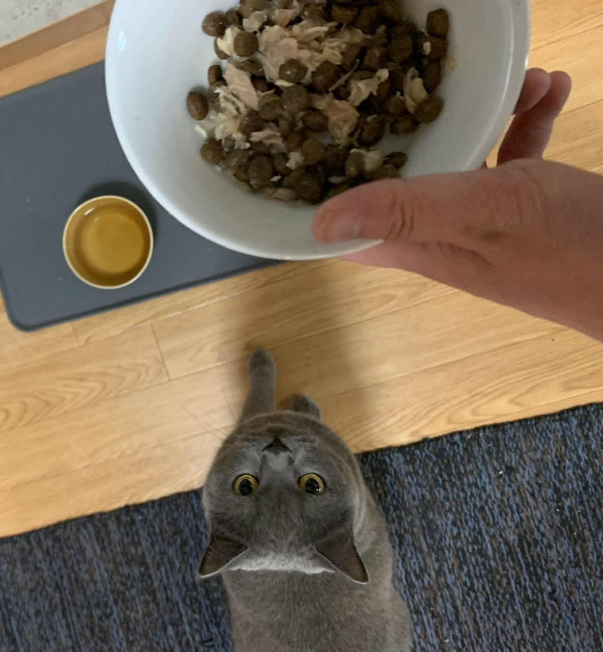 フタを開けたら酢コンブのような匂いがして、これは絶対無理だ…と諦めかけていました。でも、コンブならカツオと相性がいいかも?と思いつき、かつおだしスープのおやつに混ぜてあげたら、すごい食いつき‼︎むしろ前よりも美味しそうに食べていました。
