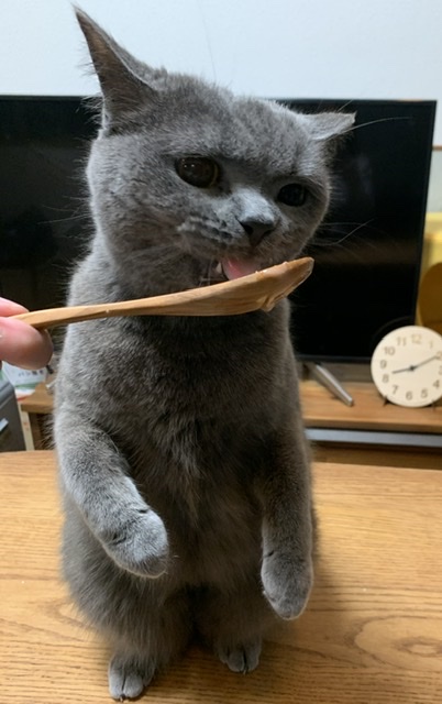 とても気に入った様子で、私が冷蔵庫から出すと嬉しそうについてきます。手でホールドしながら食べそうな勢いです笑