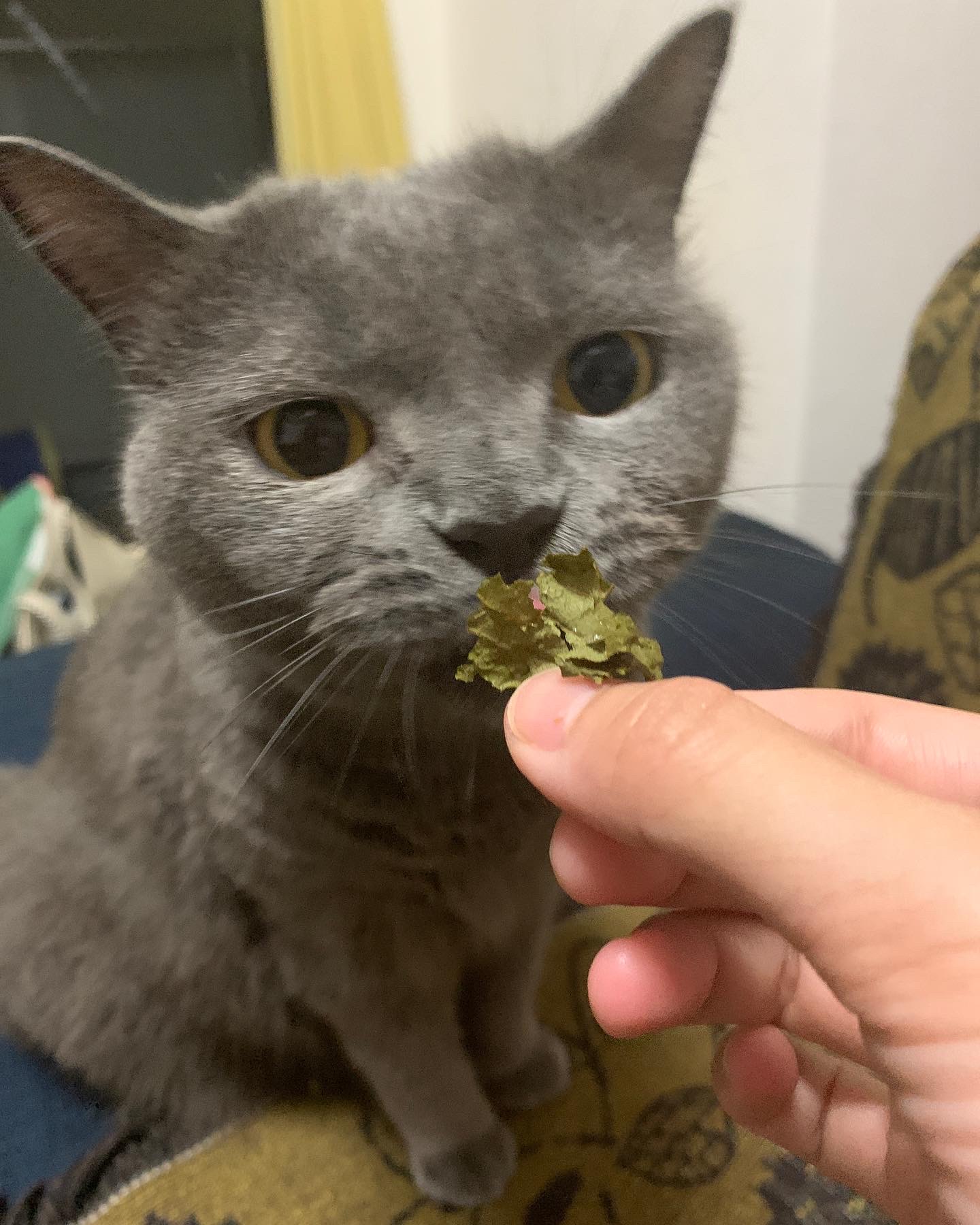 日本茶のような香りもヒーリング効果があるのか幸せそうな顔です。